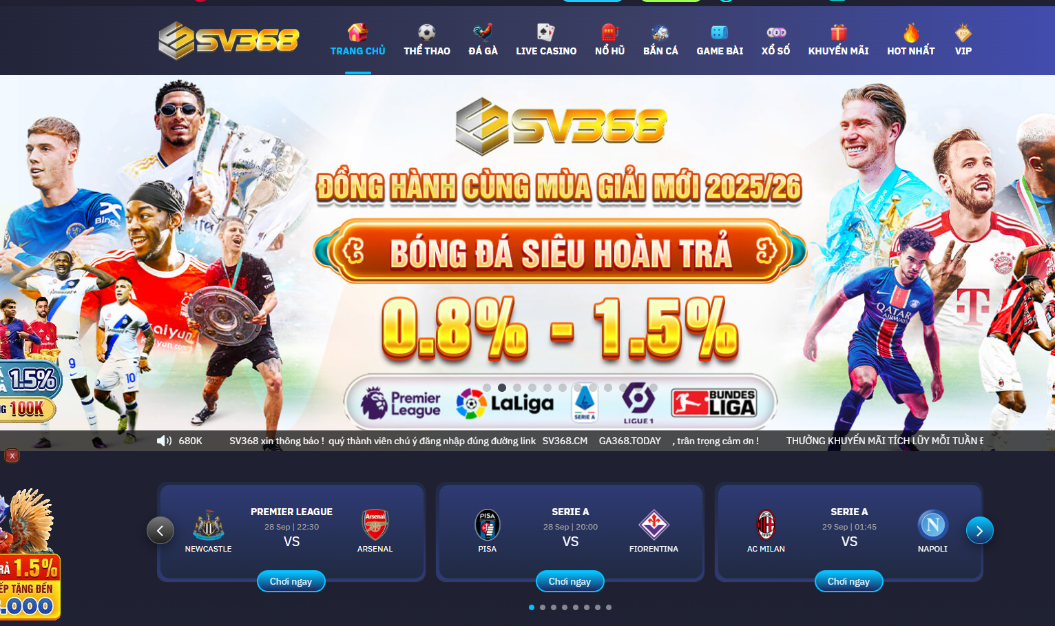 SV368 – Trang game đá gà, casino nạp rút nhanh uy tín hàng đầu 2025